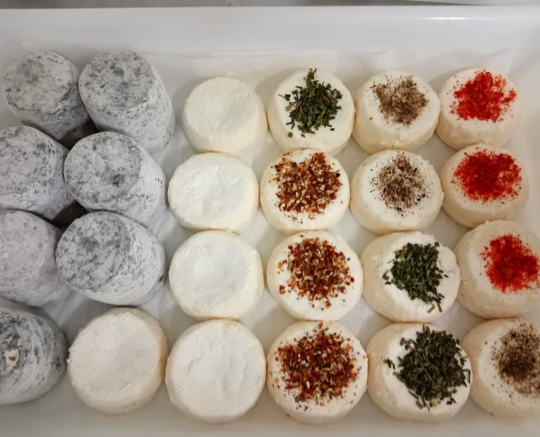 Des savoureux fromages frais au lait cru moulés à la louche de façon traditionnelle et de délicieuses tommes de chèvre artisanales et authentiques. Il y en a pour tous les goûts; des natures, des cendrés, aux herbes, aux épices et aux aromates !