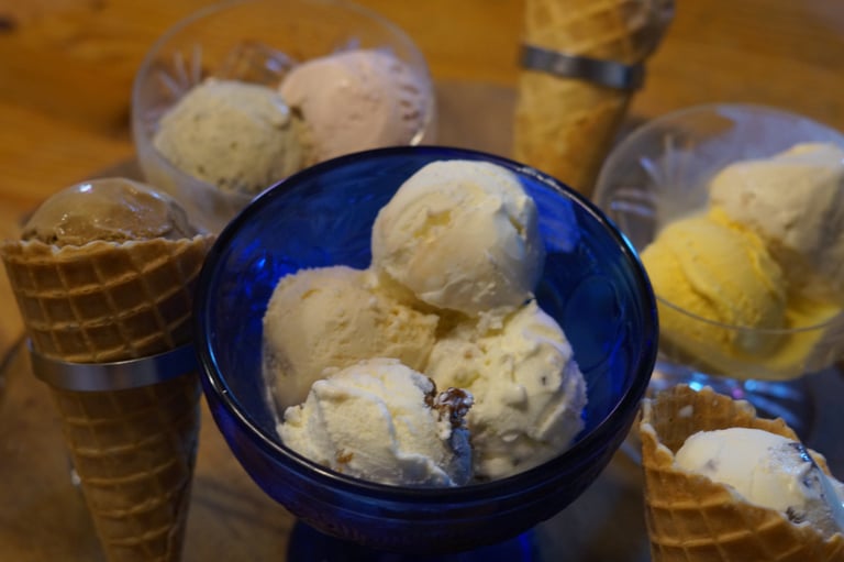 Des glaces artisanales préparées avec soin à partir du lait de leurs chèvres élevées en plein air. Savourez des saveurs uniques et rafraîchissantes !
